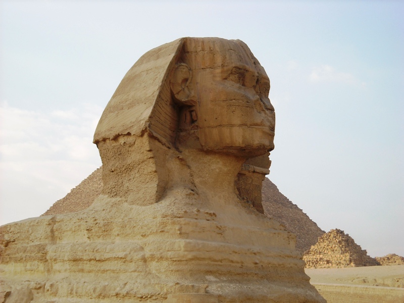 The Sphinx is nearby. Originally it had the typical beard we see on Pharaohs. But the British removed it and sent it to England. |
