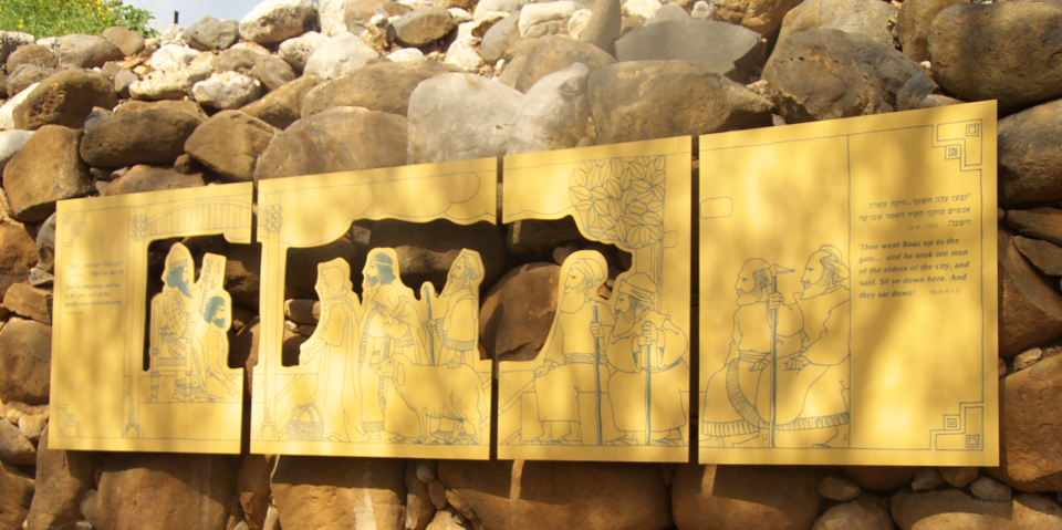 This sign quotes 2 Kings 23:8 which tells how king Josiah broke down the shrines at the gates. |