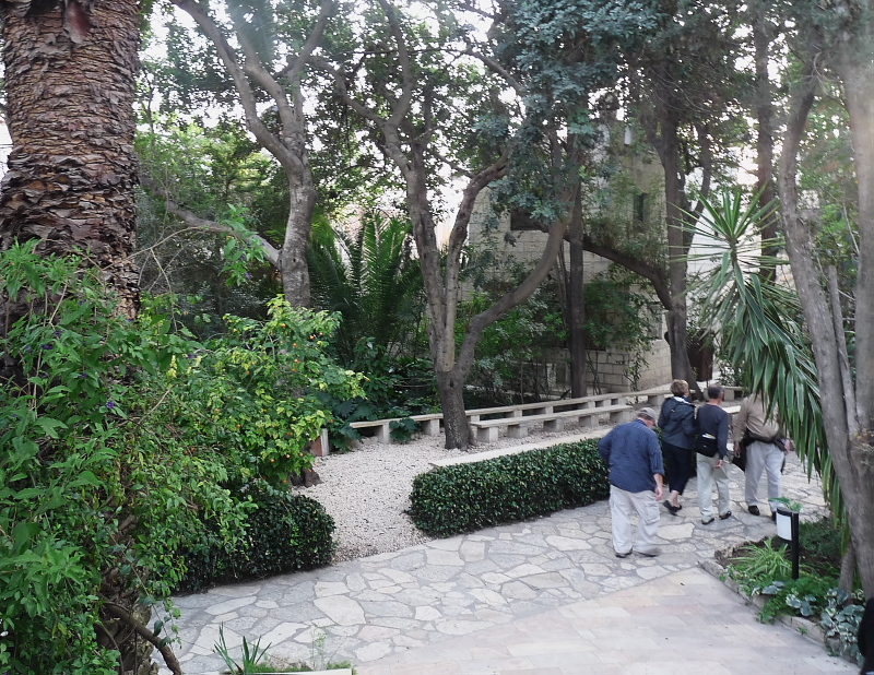 We recall that Joseph of Arimathea got permission from Pilot to take Jesus' body and place it in his own tomb. A large stone was rolled in front of the door. (Matthew 27:57-61, Mark 15: 42-47, Luke 23:50-54, and John 19:38-42) The account in John includes "At the place where Jesus was crucified, there was a garden, and in the garden, a new tomb, in which no one had ever been laid." (John 19:41 NIV) The Garden Tomb has many of the requirements of being the site of Jesus' tomb. Whether it is actually the right site is subject to debate. But as the English guide at the Garden Tomb said. "It doesn't make any difference. He is not here. He is risen!." Whether it is the actual site or not, it has a number of appealing qualities. Unlike the Church of the Holy Sepulcher it is quiet and peaceful. Our Jewish guide for the Israel portion of the tour told us he likes to come here for prayer even though he is not a Christian. He said he was a Jew even though he treated the Old and New Testaments as one book and loved Jesus as his Rabbi. But he was not sure that he was the promised Messiah. Some on-line references: The Garden Tomb web site and Bible Places |