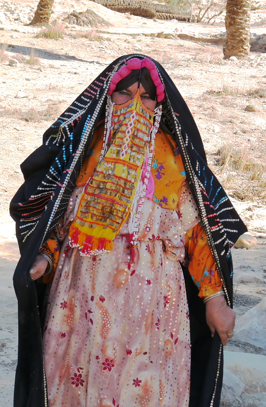 On the way to Elim we noticed that the road was being repaired. At Elim we met a Bedouin woman, together with her son and daughter. After welcoming us, she told us that her home had been washed away in floods about 2 weeks ago. That explained the problem with the roads. Our guide said married Bedouin women dressed very well. Danielle noticed she was wearing eye make up.