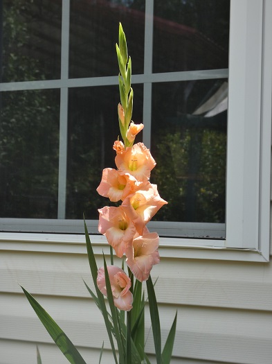 This is the first gladiolus too bloom. Of course it takes several days for the glad bloom to develop completely. These pictures were taken just one day apart.